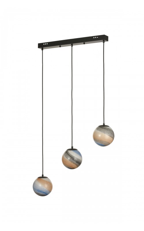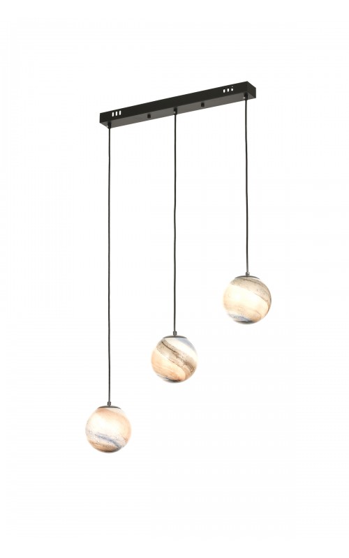Avizemoda Galaksi 3 lü Yemek Masası Üstü Uzay Desen Camlı Modern Sarkıt Avize - (Siyah Kasa)
