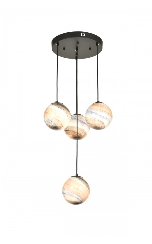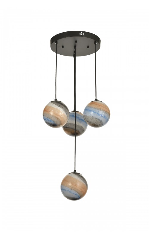 Avizemoda Galaksi 4 lü Uzay Desen Camlı Salon Oturma Odası Modern Sarkıt Avize - (Siyah Kasa)