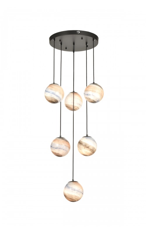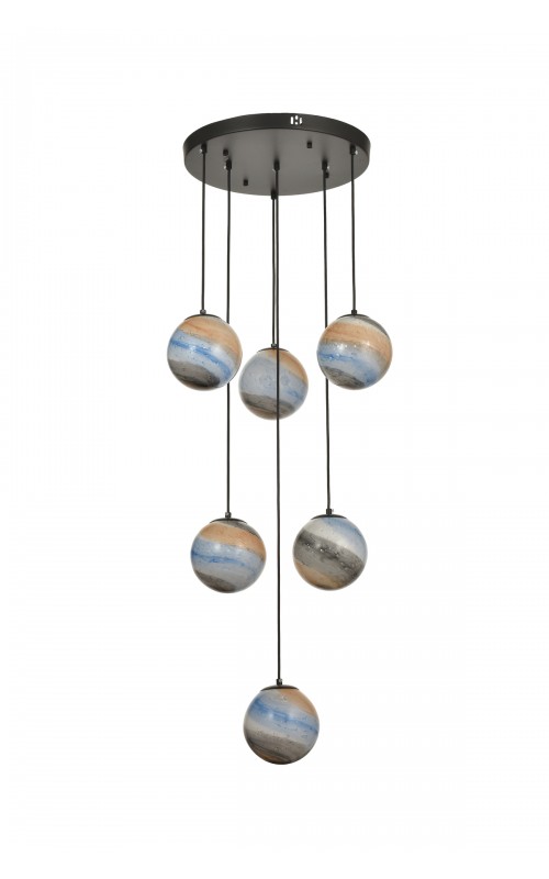 Avizemoda Galaksi 6 lı Uzay Desen Camlı Salon Oturma Odası Modern Sarkıt Avize - (Siyah Kasa)