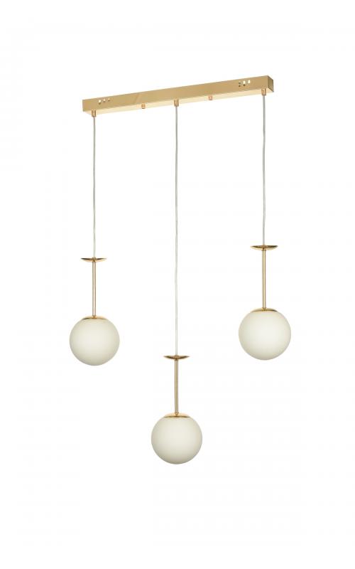 Avizemoda Pinza 3 lü Yemek Masası Üstü Beyaz Camlı Modern Sarkıt Avize - (Gold Kaplama)