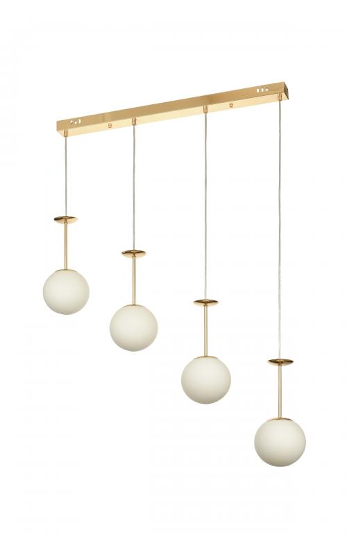 Avizemoda Pinza 4 lü Yemek Masası Üstü Beyaz Camlı Modern Sarkıt Avize - (Gold Kaplama)