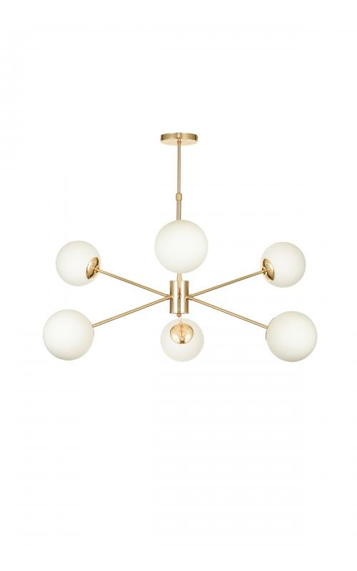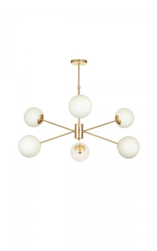Avizemoda Pinza 6 lı Beyaz Camlı Salon Oturma Odası Modern Kollu Avize - (Gold Kaplama)
