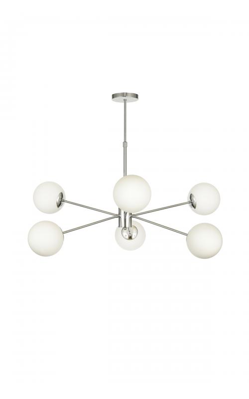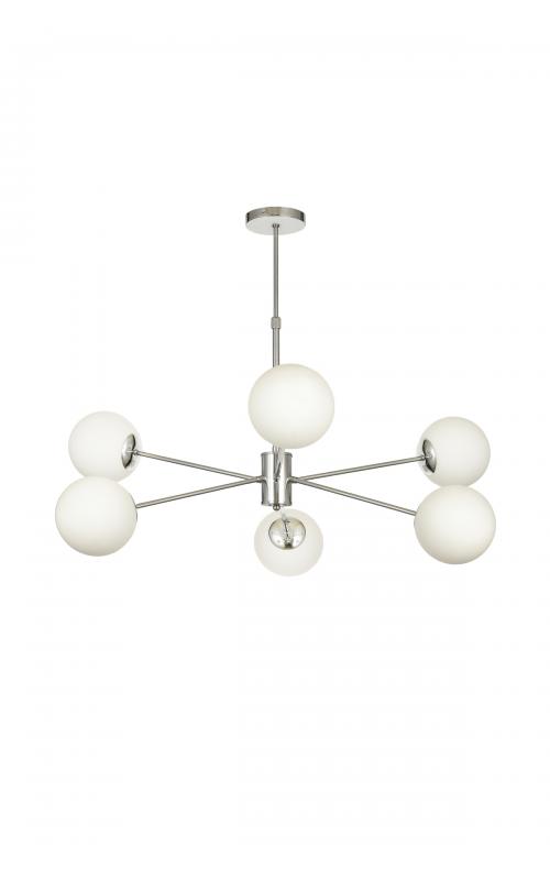 Avizemoda Pinza 6 lı Beyaz Camlı Salon Oturma Odası Modern Kollu Avize - (Krom Kaplama)