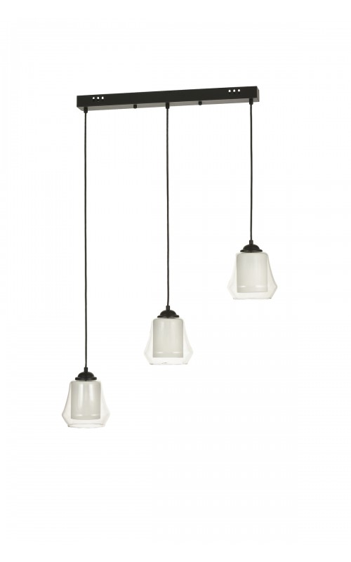 Kuponlu Ürün Hızlı Kargo Avizemoda Venita 3 lü Yemek Masası Üstü Şeffaf+Beyaz Çift Camlı Modern Sarkıt Avize - (Siyah Kasa)