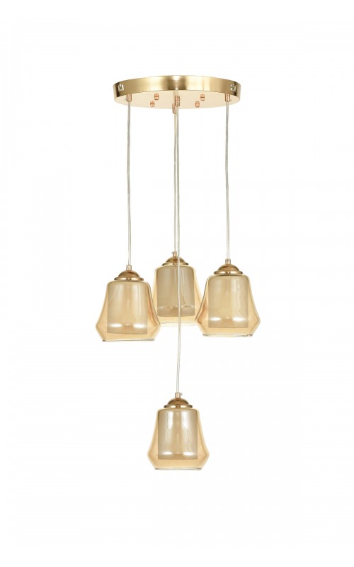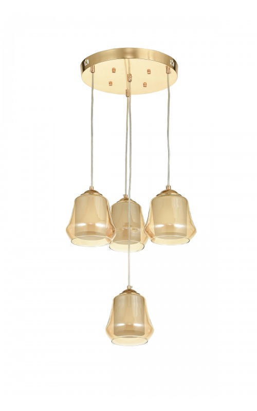 Avizemoda Venita 4 lü Bal+Beyaz Çift Camlı Salon Oturma Odası Modern Sarkıt Avize - (Gold Kaplama)