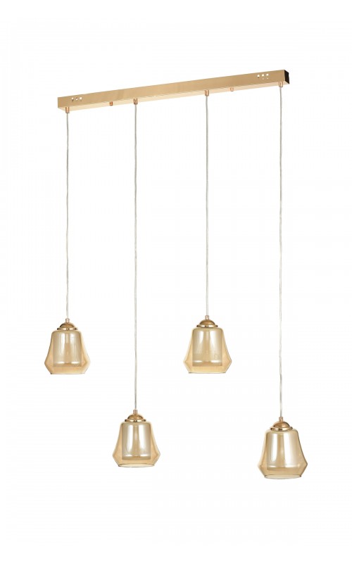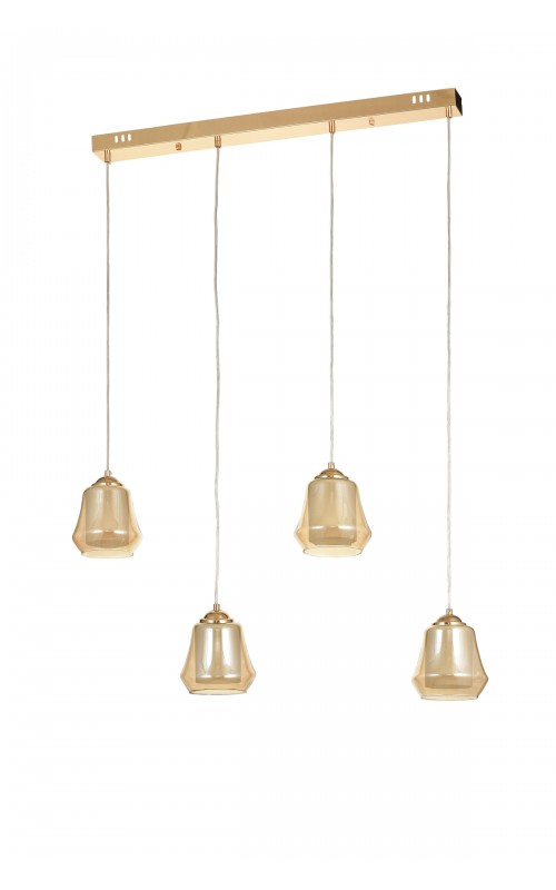 Avizemoda Venita 4 lü Yemek Masası Üstü Bal+Beyaz Çift Camlı Modern Sarkıt Avize - (Gold Kaplama)