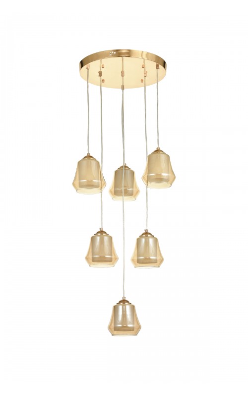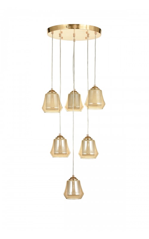 Kuponlu Ürün Avizemoda Venita 6 lı Bal+Beyaz Çift Camlı Salon Oturma Odası Modern Sarkıt Avize - (Gold Kaplama)