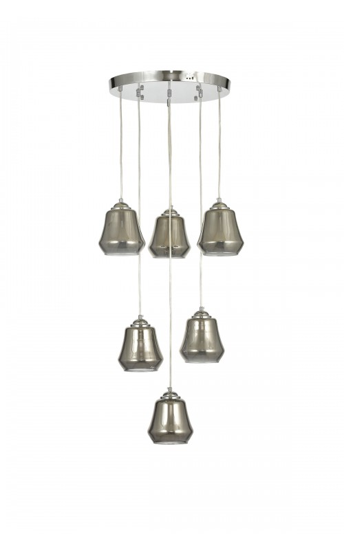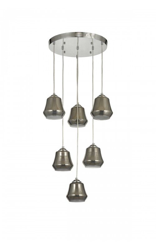 Avizemoda Venita 6 lı Füme+Beyaz Çift Camlı Salon Oturma Odası Modern Sarkıt Avize - (Krom Kaplama)