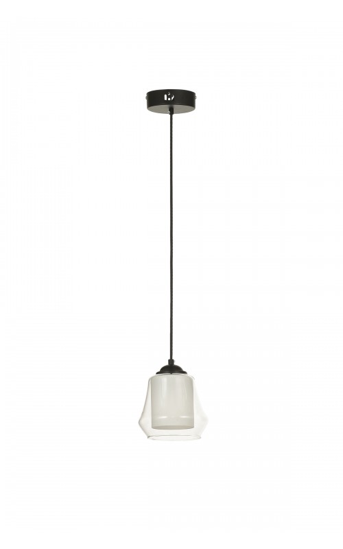 Avizemoda Venita Tekli Şeffaf+Beyaz Çift Camlı Salon Oturma Odası Modern Sarkıt Avize - (Siyah Kasa)