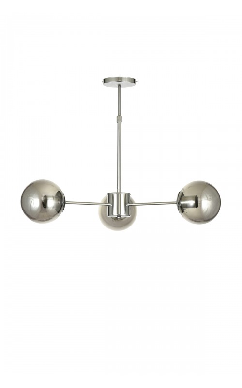 Avizemoda Miya 3 lü Füme Camlı Salon Oturma Odası Modern Sarkıt Avize - (Krom Kaplama)