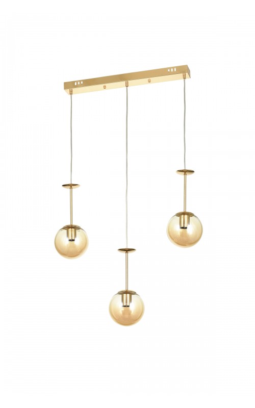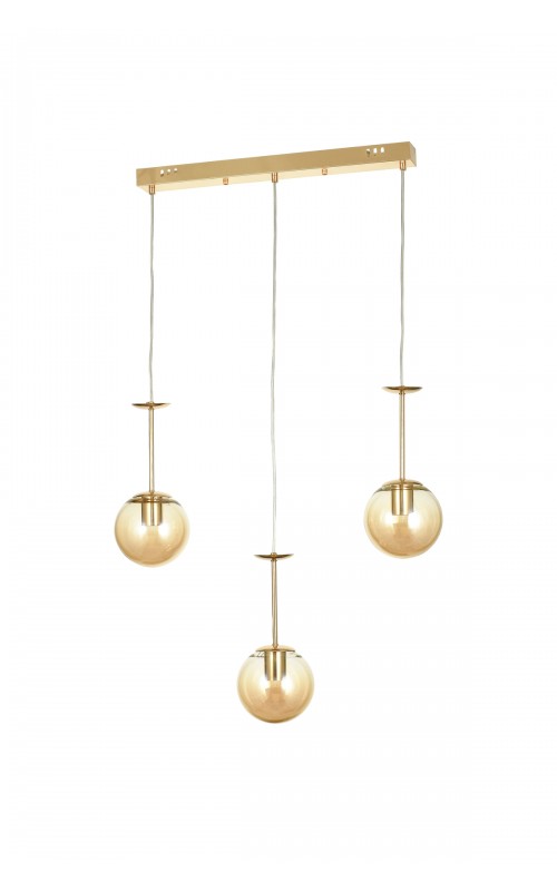 Kuponlu Ürün Hızlı Kargo Avizemoda Pinza 3 lü Yemek Masası Üstü Bal Camlı Modern Sarkıt Avize - (Gold Kaplama)