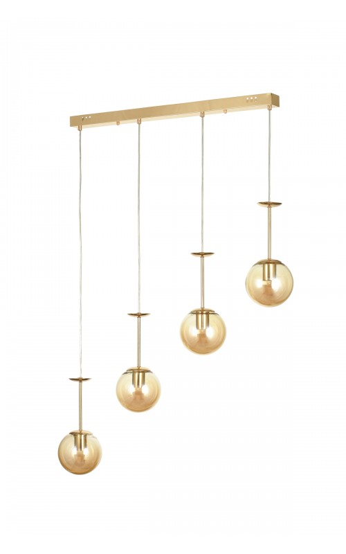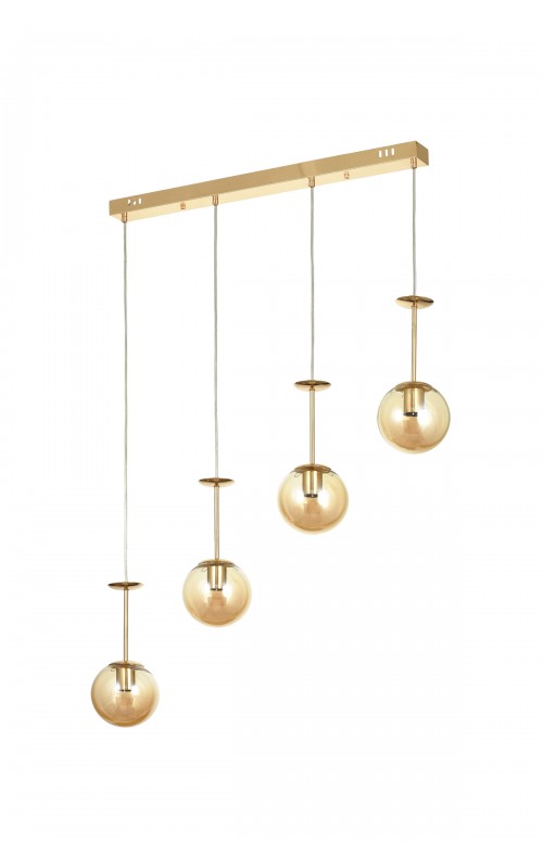 Avizemoda Pinza 4 lü Yemek Masası Üstü Bal Camlı Modern Sarkıt Avize - (Gold Kaplama)