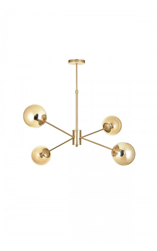 Kuponlu Ürün Hızlı Kargo Avizemoda Pinza 4 lü Bal Camlı Salon Oturma Odası Modern Kollu Avize - (Gold Kaplama)