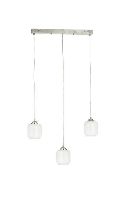 Avizemoda Siena 3 lü Yemek Masası Üstü Beyaz Camlı Modern Sarkıt Avize - (Krom Kaplama)