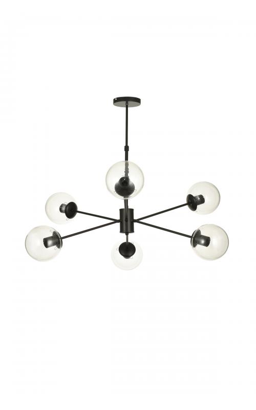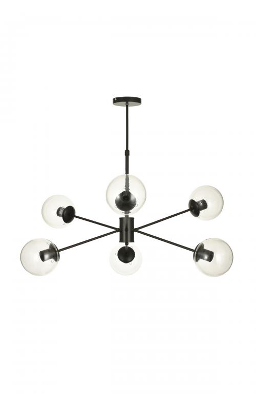 Avizemoda Pinza 6 lı Şeffaf Camlı Salon Oturma Odası Modern Kollu Avize - (Siyah)